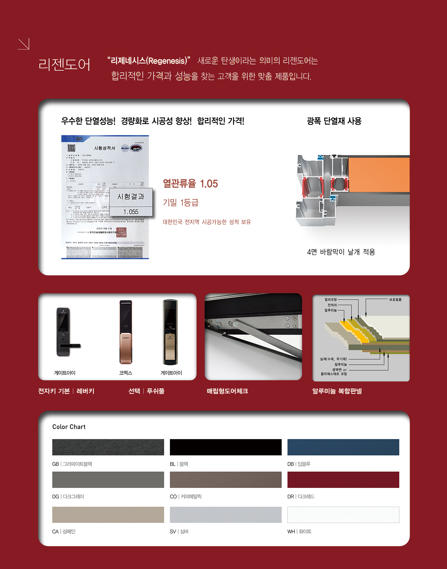 110 / 70 ㎜ 알루미늄 복합판넬 레버전자키/ 매립형도어클로저 열관류율 1.05 / 기밀 1등급